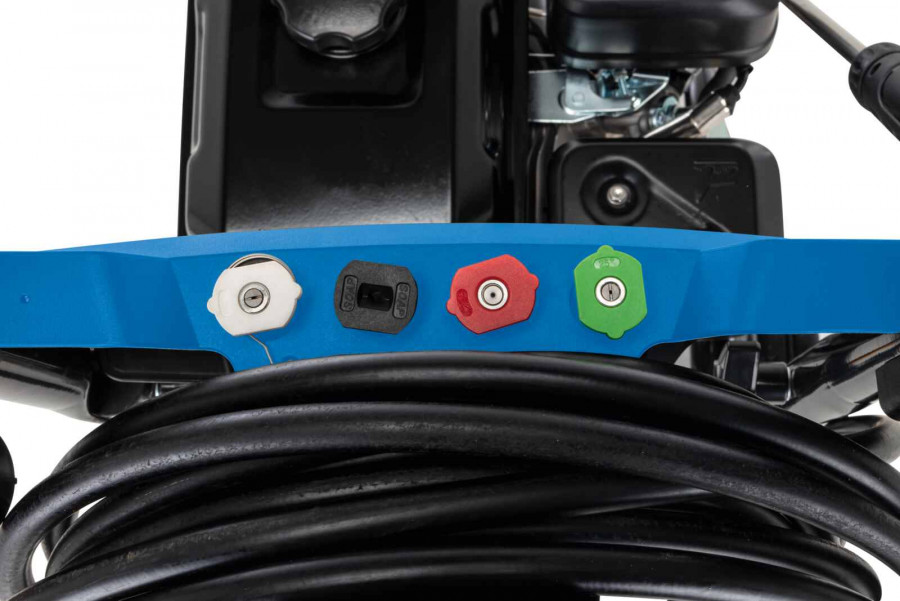 Scheppach HCP5000 bensiin survepesur on varustatud mitmete praktiliste lisatarvikutega, mis võimaldavad kohandada veejuga vastavalt puhastatavale pinnale.