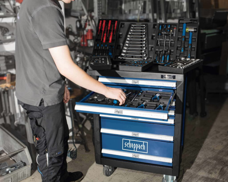Scheppach TW1000 tööriistakäru sisaldab laia valikut tööriistu, sealhulgas: